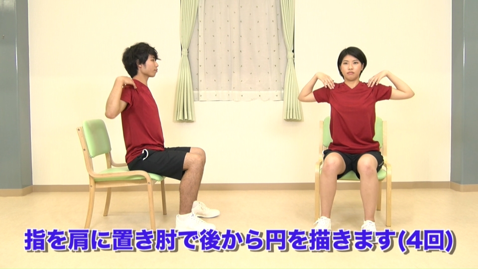 | 4 | B:胸郭 肩甲骨 | 脇を締めて肘を曲げ、前後運動 | 【目的】各動作を呼吸と共に促す 【課題】リズムに乗って運動 |