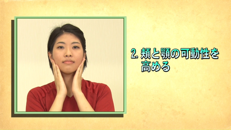 | B | 頬マッサージ・顎開閉 | 頬マッサージ・顎運動 | 音のメリハリに合わせて運動 |