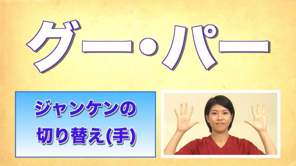 | C | じゃんけん言葉を聞き分ける | 手指関節(四指屈伸)運動と足関節のリズミカル運動を実施する。 | リズムに合わせて聞き分け動作する |