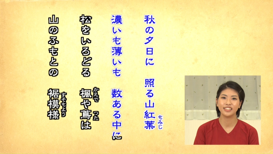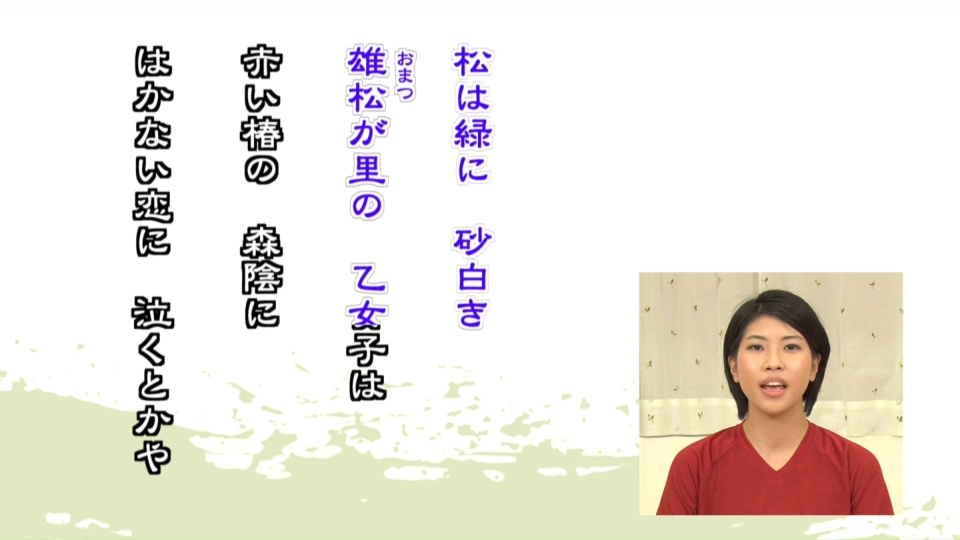 | B | 和歌の音読と復唱 | 和歌の音読と復唱 | なめらかに音読・斉唱する |